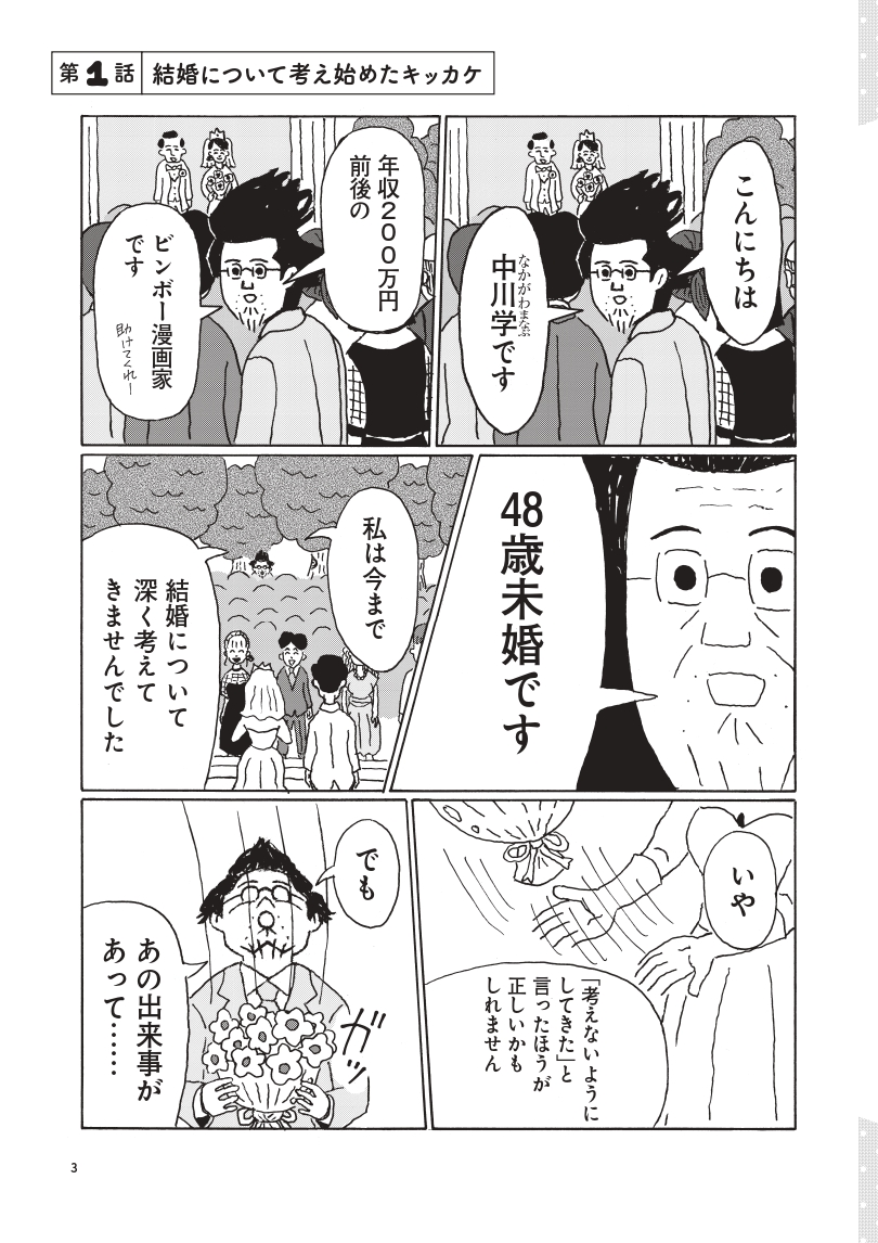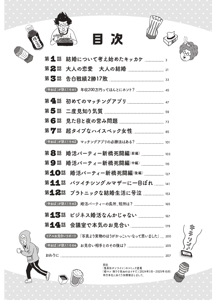 コロナ禍のある経験がきっかけとなり、年収200万円、48歳の独身漫画家が婚活に目覚めた! 「友人や知人」「マッチングアプリ」「婚活パーティー」「お見合い」……いろんな形で本気の婚活に挑む実録コミックエッセイ! その結末は?