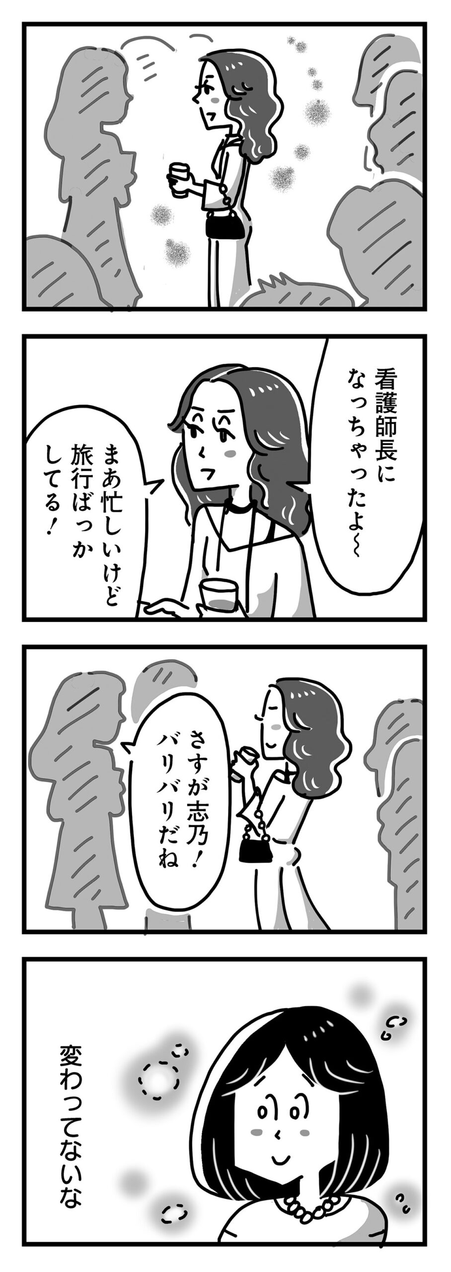 第2話は卒業以来30年ぶりの同窓会。もうひとりの主人公となる神崎志乃が登場します。
