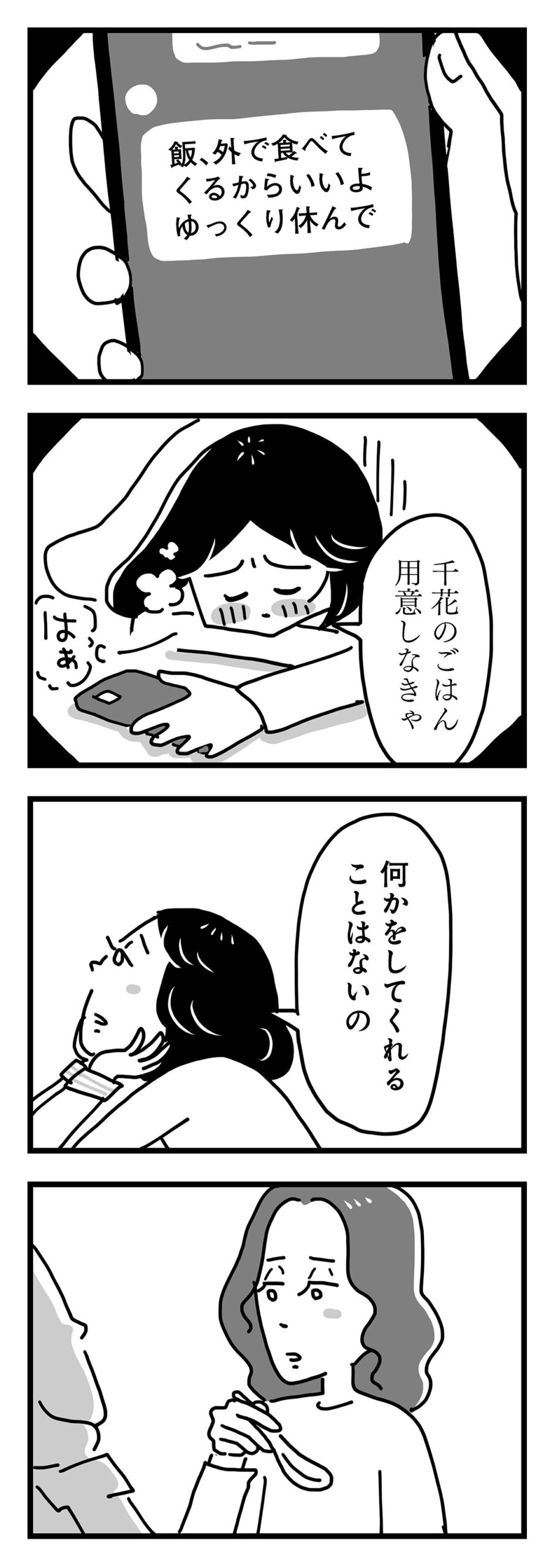 自分だと大げさに騒ぐのに、妻が熱を出しても「外食してくるから大丈夫」と言う夫…【50歳、その先の人生がわからない 第6話】