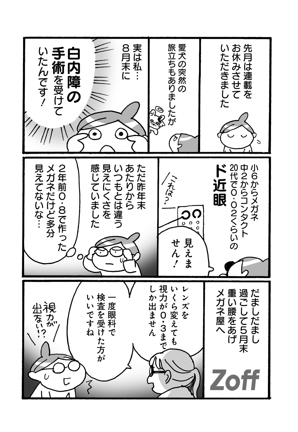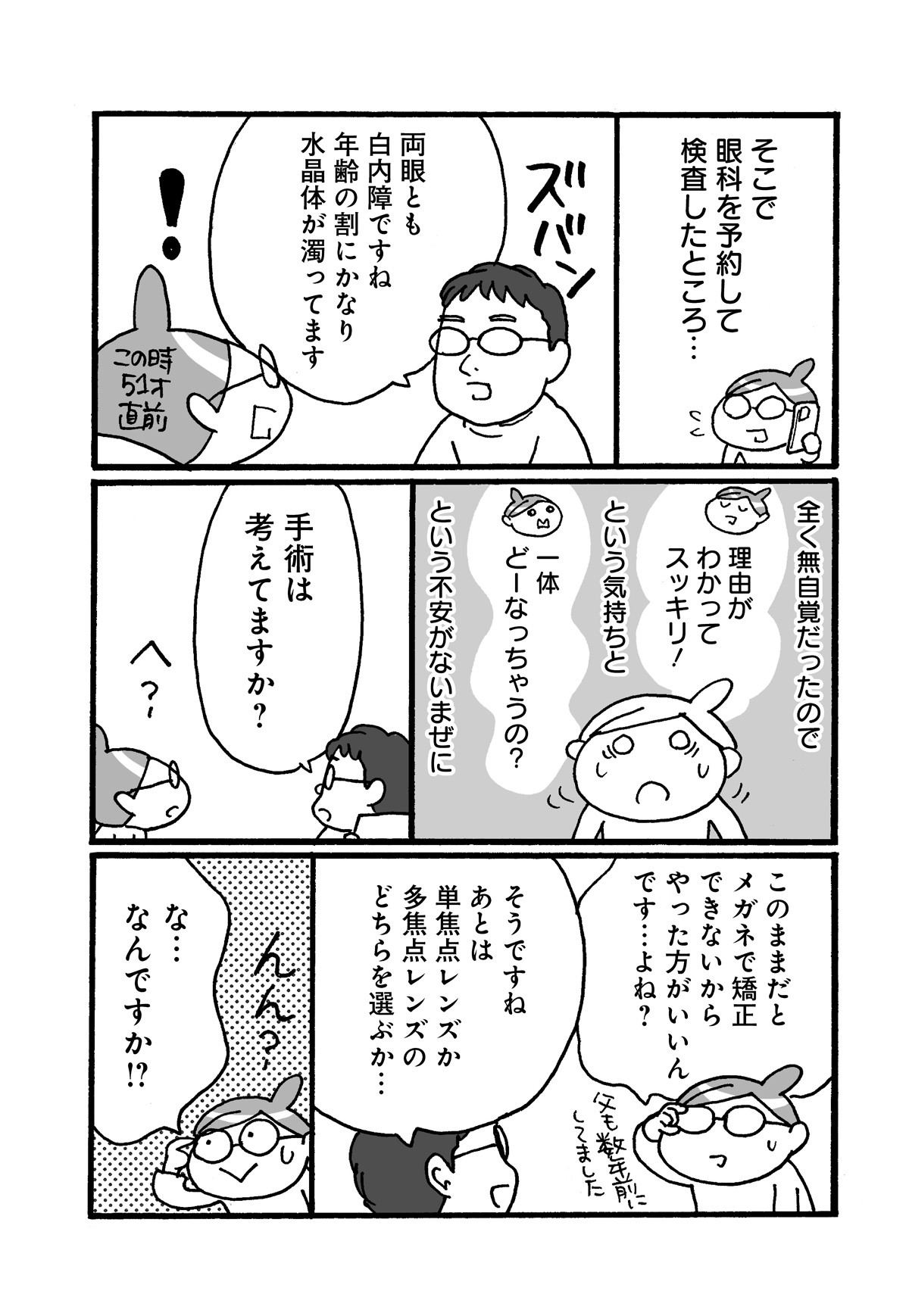 今回は、自身の体にも変化が……。職業的にもとっても大切な眼。最近見づらくなったと思っていたら白内障との診断が出て……。