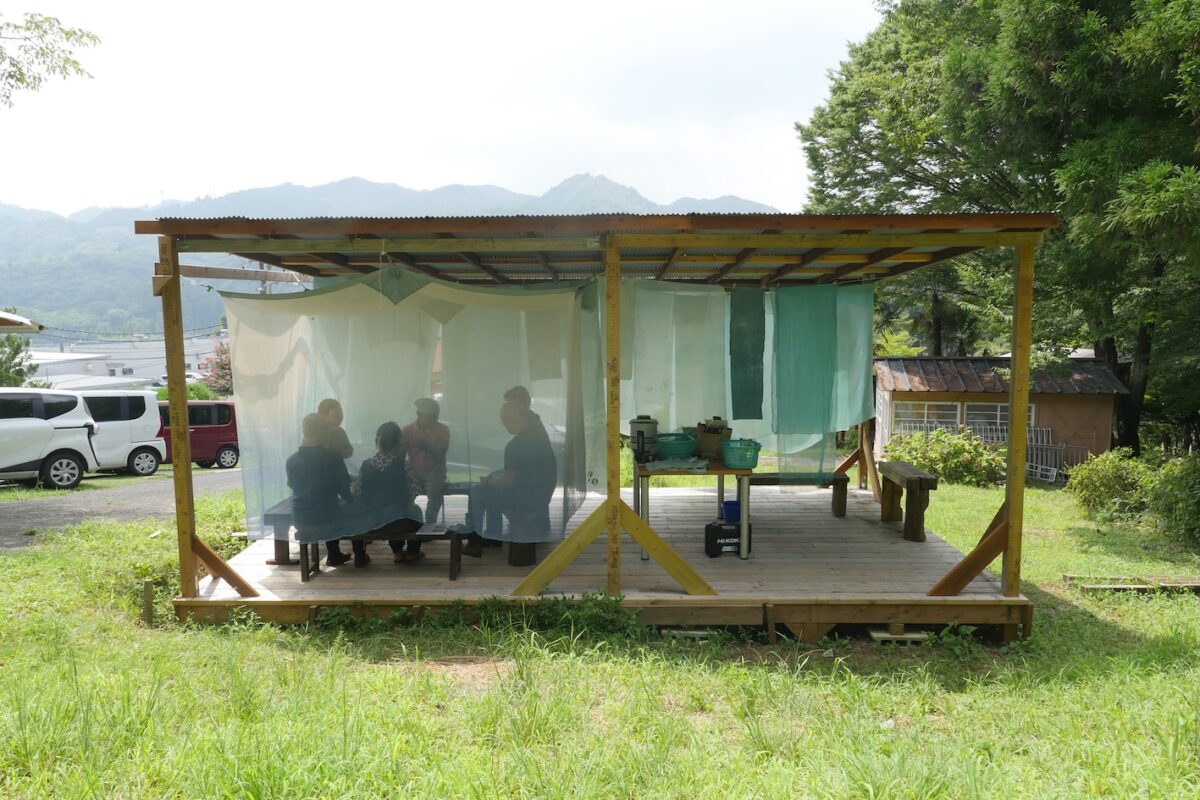4年目の滞在制作。風に揺れる藍布の空間で食しながら語らう