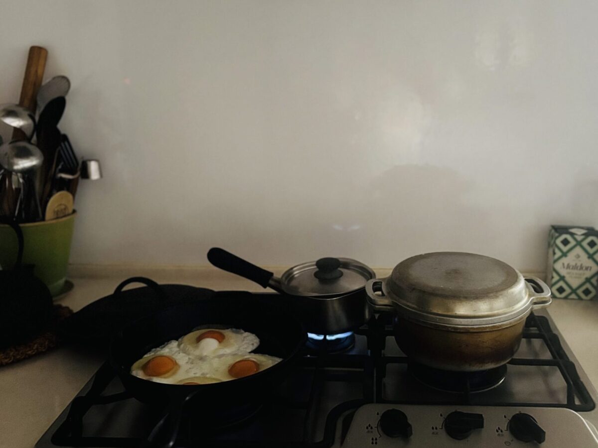 こうやってゆっくりと自分のために料理をしていると、とても満たされた楽しい気持ちがしてくる。こしらえたものはとても自分にフィットして滋養があるように思えてくる。自分の手で自分のお腹と心を満たせるものを作ることができるのは、わたしを楽しく自由な気持ちにさせてくれる。こんなとき、わたしは少しだけ食べることの難しさから解き放たれる。時に庭の木の葉が風に揺れるのを見ながら、音楽を流しながら、時には少しお行儀悪く朝刊を眺めながら、お昼ごはんを食べる。